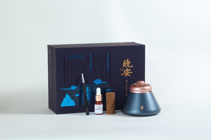 現(xiàn)代人生活壓力大,很多人存在不同程度的睡眠問題。 古城香業(yè)傳承國家級(jí)非物質(zhì)文化遺產(chǎn)清苑傳統(tǒng)制香技藝,在中國古代隔火熏香的基礎(chǔ)上,創(chuàng)新地將傳統(tǒng)元素與現(xiàn)代工藝相結(jié)合研發(fā)電子熏香器,采用海南沉香、香杉粉、酸棗仁研制成安神助眠熏香片,搭配由薰衣草油、檀香油、甜橙花油調(diào)制而成的熏香精油,通過程序變溫加熱緩釋技術(shù)使甜美的花果香、醇和的沉檀香氣持久縈繞,在深度睡眠中與您相遇。